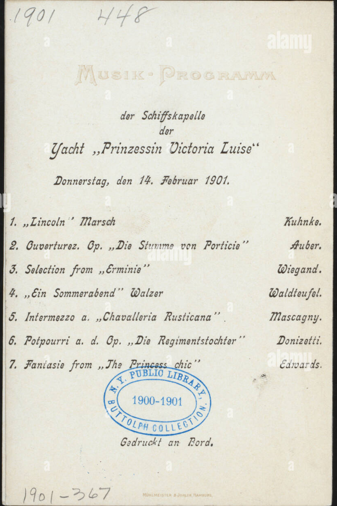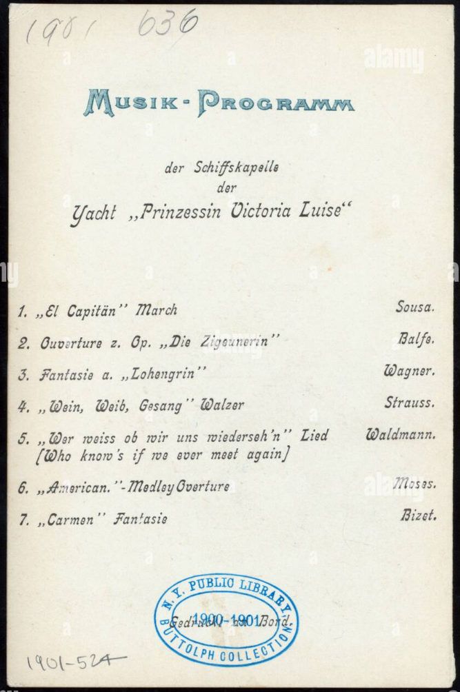 Commencez la lecture en musique, avec cette playlist constituée des musiques jouées par les musiciens sur le bateau en 1901 lors de sa croisière inaugurale (d'après des documents retrouvés dans des archives)