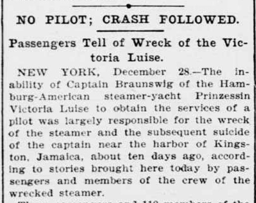 La dernière croisière débute à New-York le 12 décembre 1906, vers Kingston en Jamaïque.